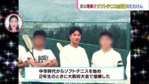 ソフトテニスでは、中学2年生の時に大阪府大会で優勝するほどの実力でした。